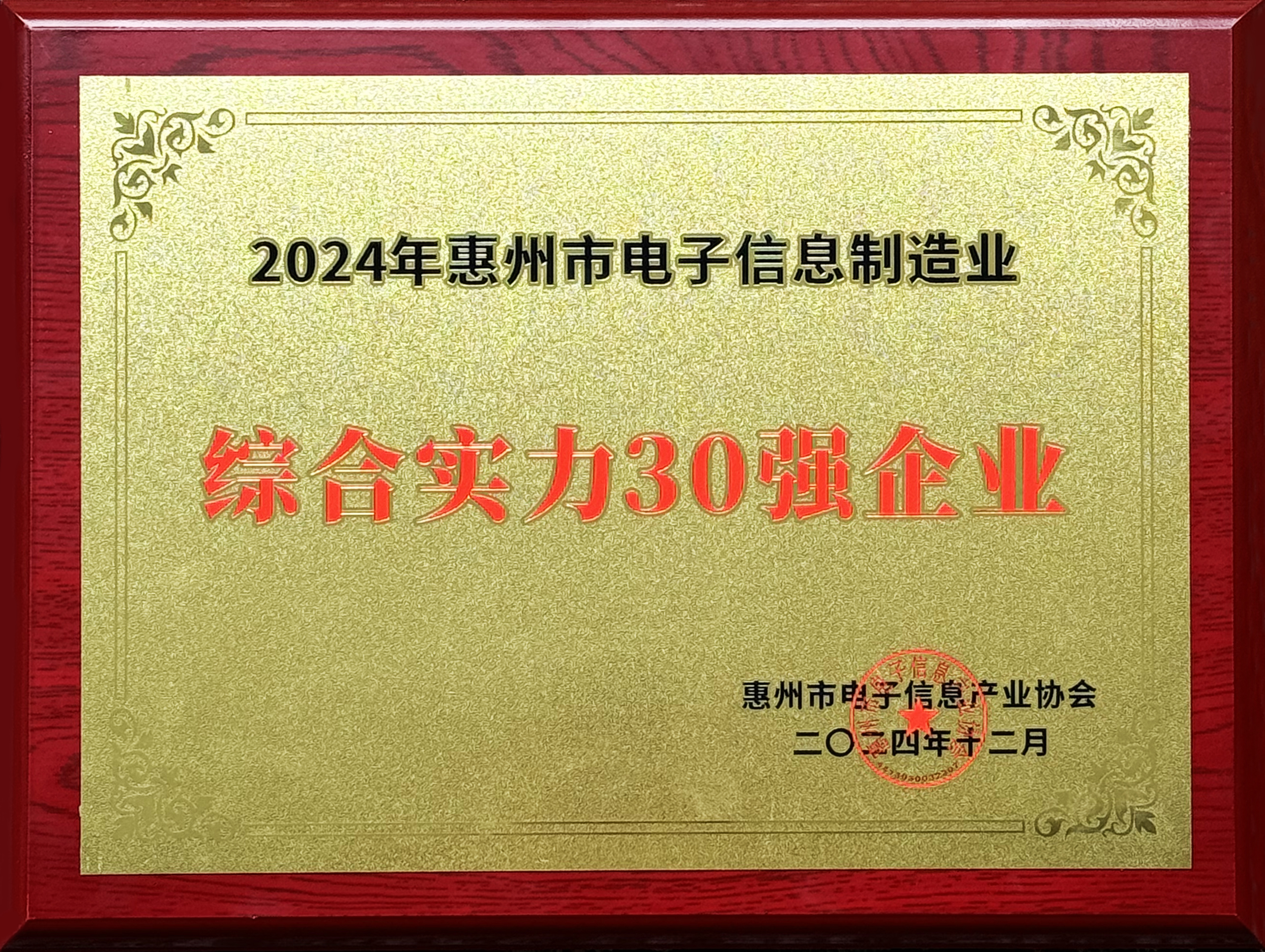 多宝电竞科技荣获“2024年惠州市电子信息制造业综合实力30强企业”称号